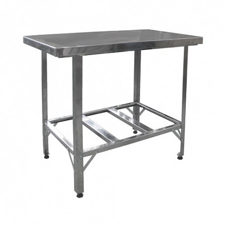 Столешница изготавливается из нержавеющей стали и дополнительно усиливается ЛДСП. Столы оснащаются полками-решетками или опционально сплошными полками из оцинкованной или нержавеющей стали, которые устанавливаются поверх полки-решетки. Ножки оснащаются винтовыми опорами, позволяющими регулировать высоту стола.